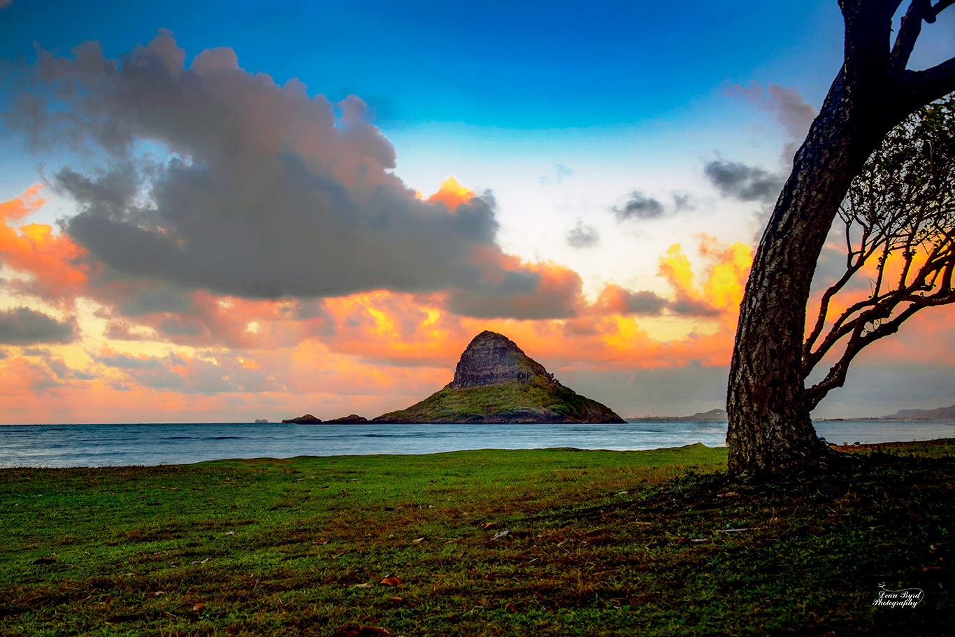 This beautiful little island is located on the northeastern side of the island of Oahu. Leona and I just happened to catch it near sunset.
