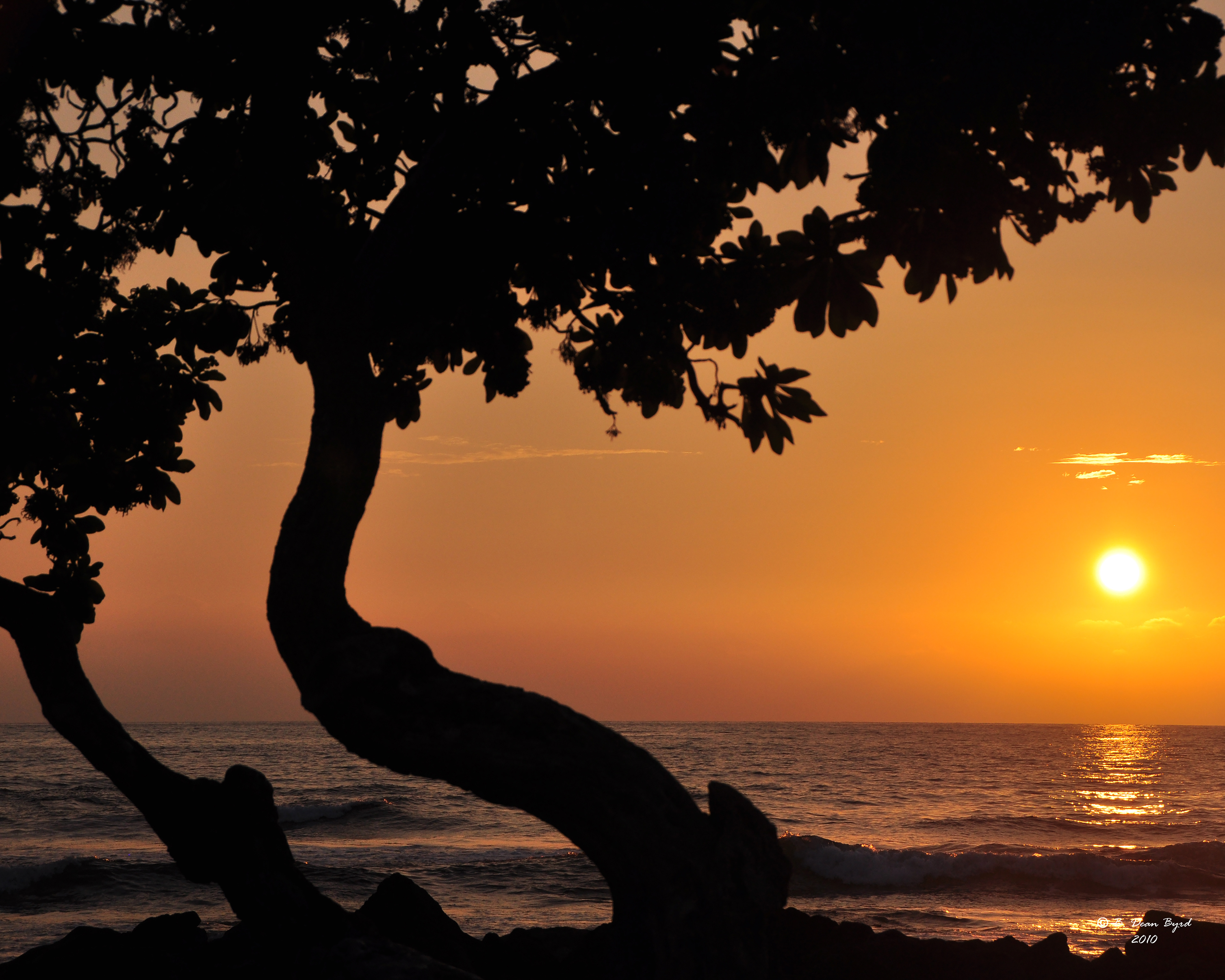 On our first visit to the Big Island of Hawaii, Leona and I enjoyed the serenity of the topical sunset as we watched an Ocean Liner sail off to the west following the sun and finally disappeared over the horizon.