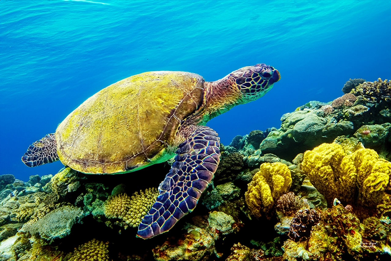 A Green Sea Turtle Swimming off the Coast of Maui