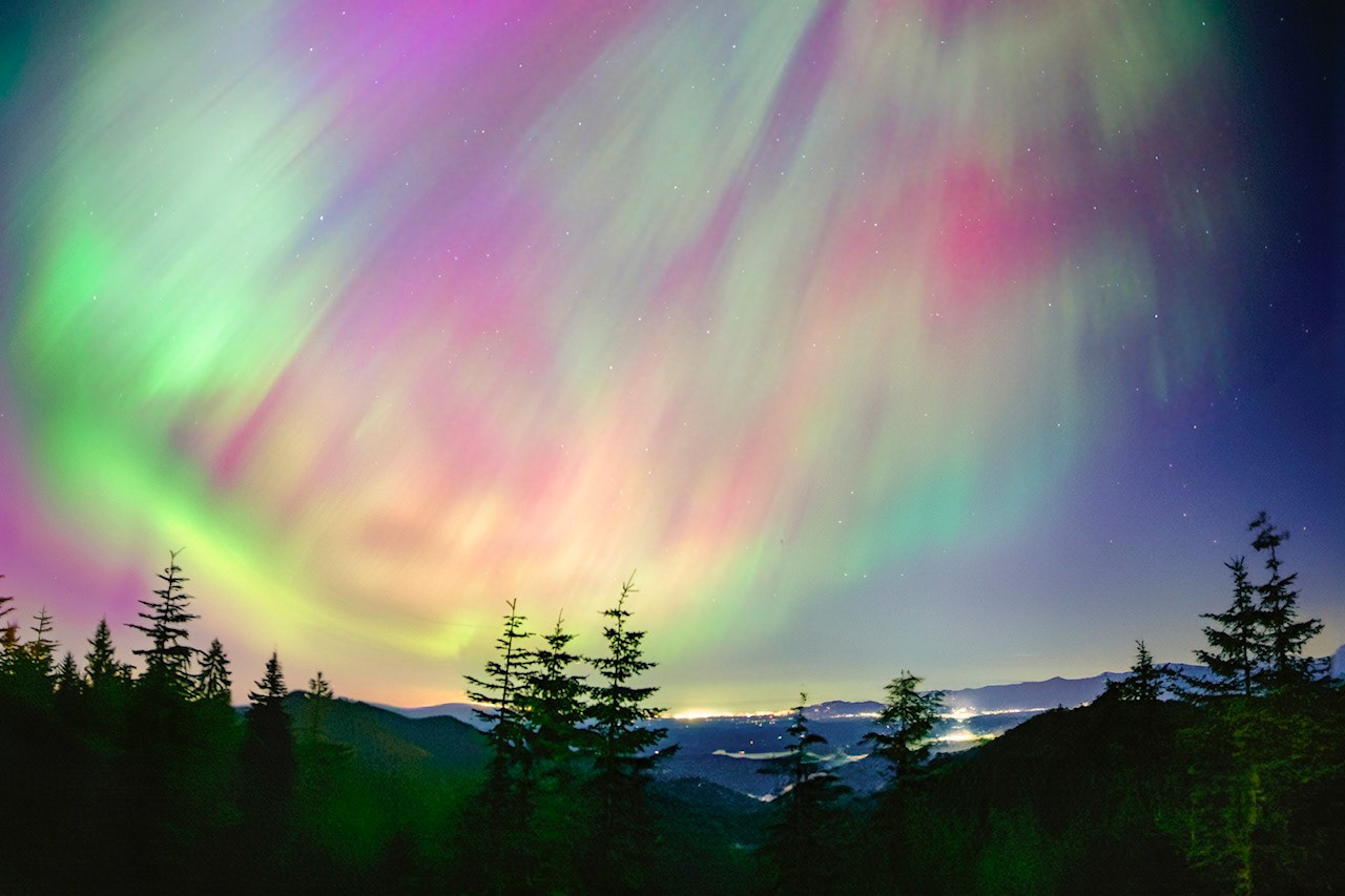 Northern Lights from the Ellinor Trailhead, Mason County, Washington, 2024