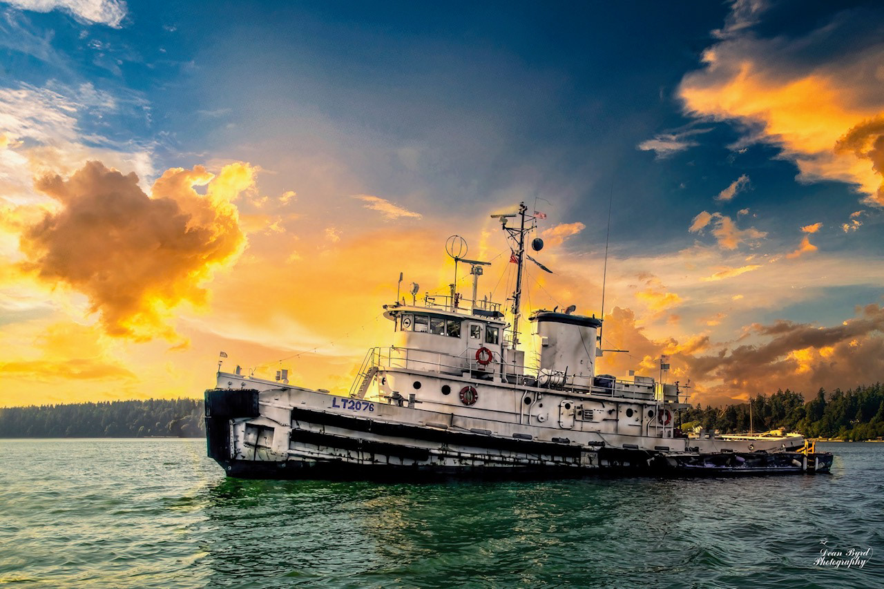 Moored quietly in Puget Sound near Tacoma, Washington, the LT-2076 rests as both a vessel of history and a striking subject of beauty. Once serving as a U.S. Army tugboat, the LT-2076 was built for strength and endurance—tasked with guiding ships, transporting supplies, and performing the essential but often unseen work that kept military operations moving. Today, captured in this 2023 photograph, the tug stands in peaceful contrast to its industrious past, its steel silhouette set against the ever-changing waters and skies of the Pacific Northwest. More than a working boat, it is now a living reminder of service, resilience, and maritime heritage.