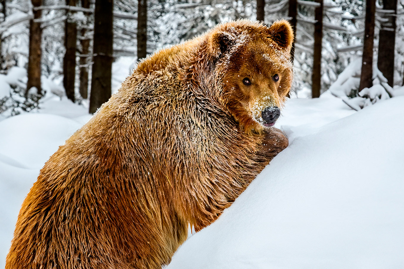 In the heart of Montana’s winter wilderness, this portrait captures a grizzly bear on a cold, snowy January day. Against the stark whiteness of falling snow, the bear’s massive form and piercing gaze command attention—an image of raw strength, resilience, and quiet majesty. This fleeting moment reveals not just the harsh beauty of the season, but the enduring spirit of one of North America’s most iconic creature.