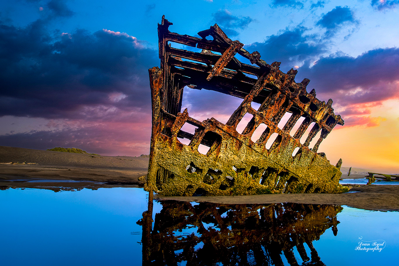 This is the remains of the wreck of the Peter Iredale that ran aground in a storm near Fort Stevens near the mouth of the Columbia River in 1906. There were no casualties.