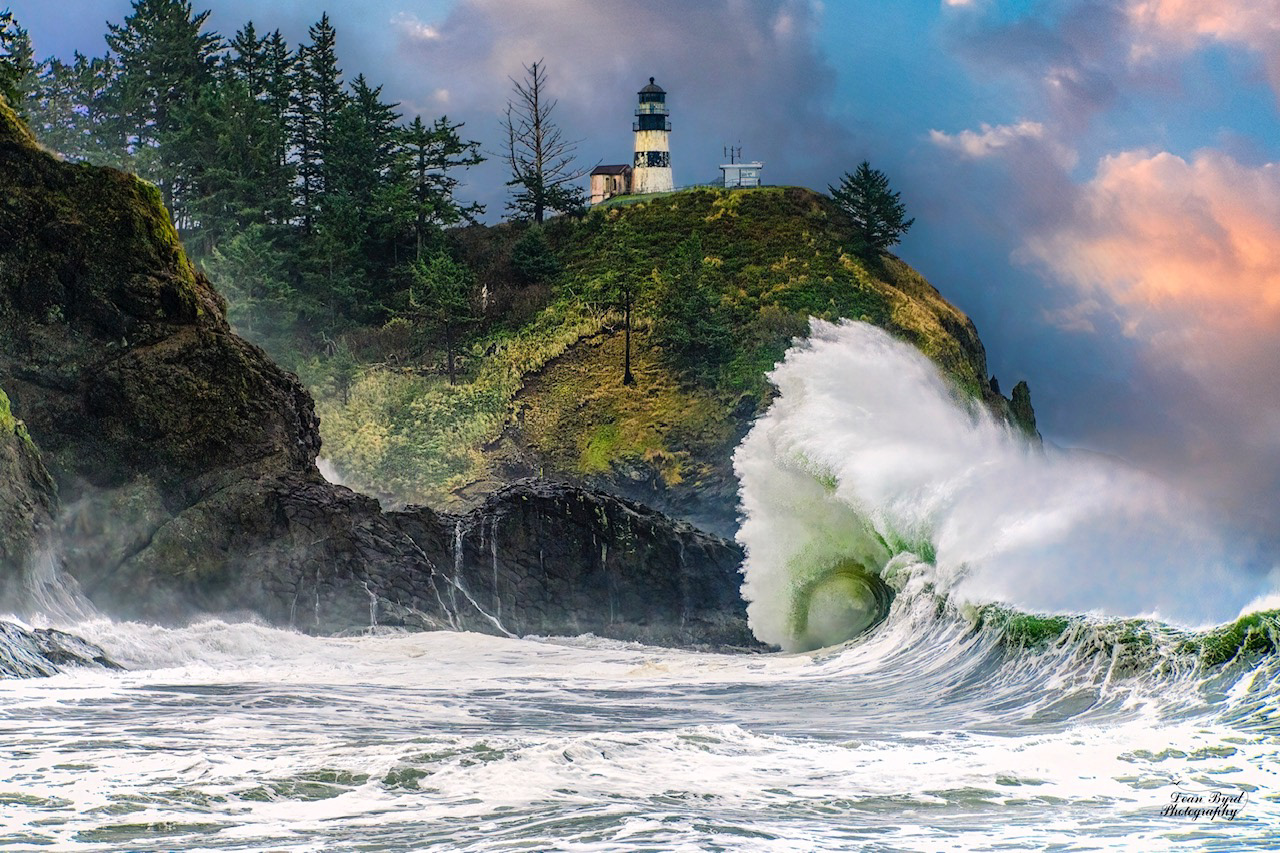 The Clouds grow darker and the wind begins to howl, The tide rises and the wave become spectacular at Cape Disappointment State Park, Washington. This place provides a ring side seat to the power of the Sea.