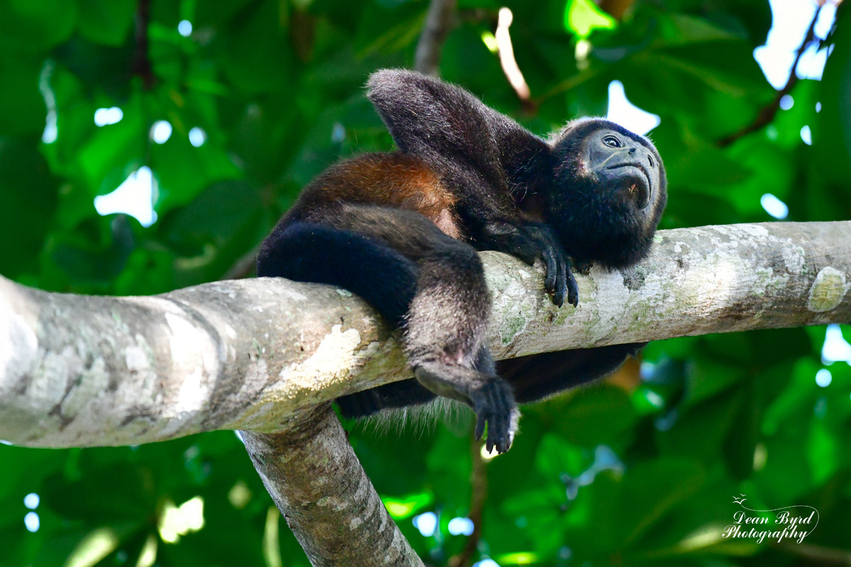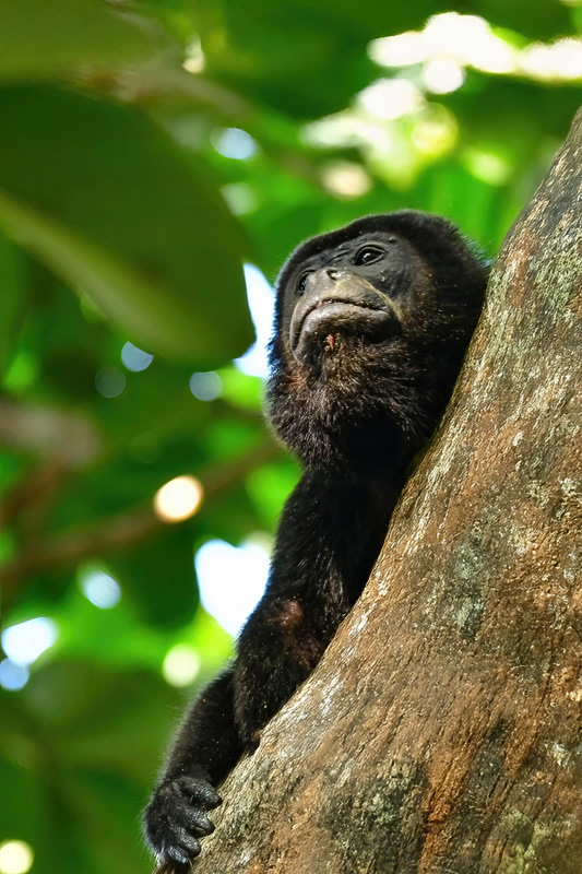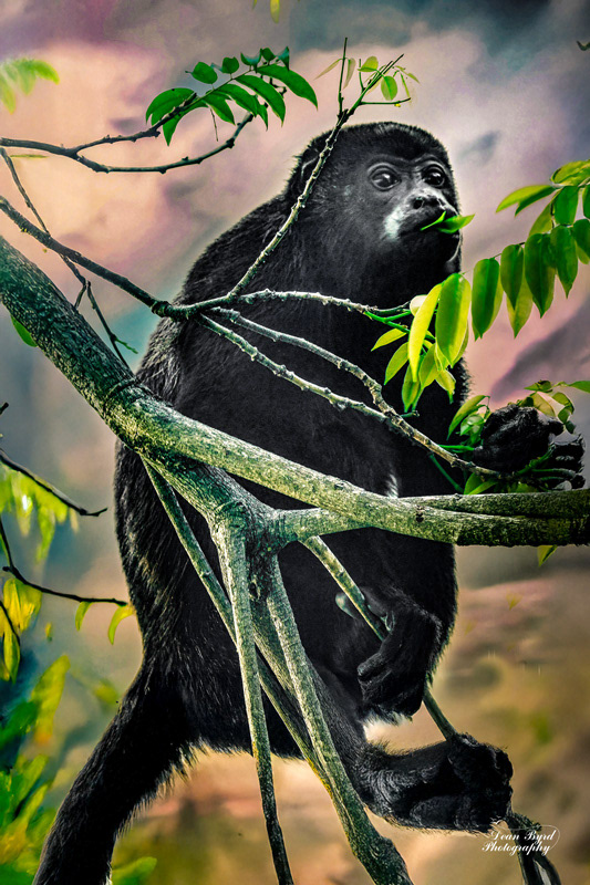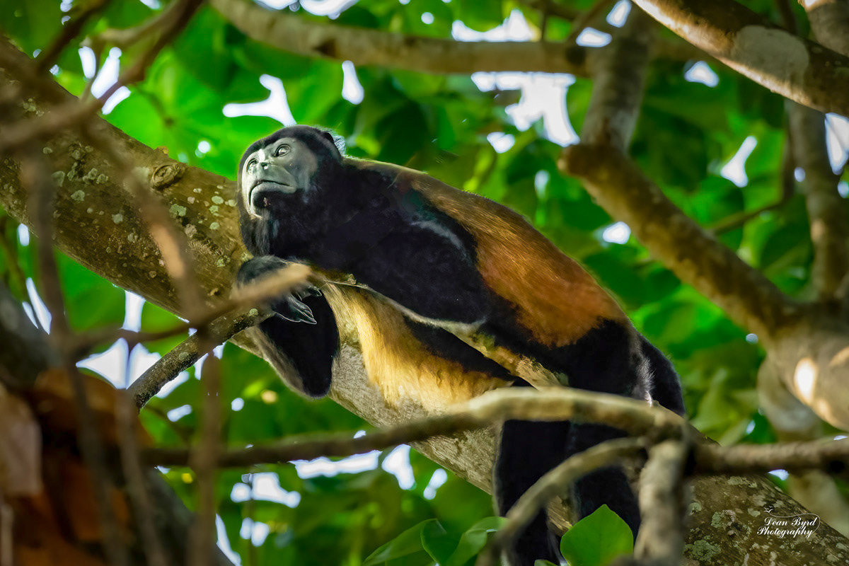 Nestled high among the emerald canopy of Costa Rica, this little Howler Monkey pauses in his sanctuary of leaves. Bathed in golden light, he takes a quiet moment to contemplate, to rest, and to reflect—finding peace in the gentle rhythm of the forest around him.